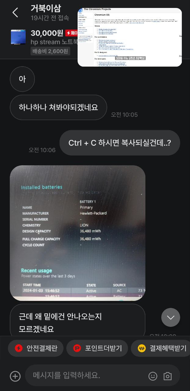 여느 때와 같이 번개장터와 당근마켓을 드나들며 노트북 매물을 찾던 저는 3만원에 올라온 HP Stream 판매글을 발겼했습니다..ㅎㅎ